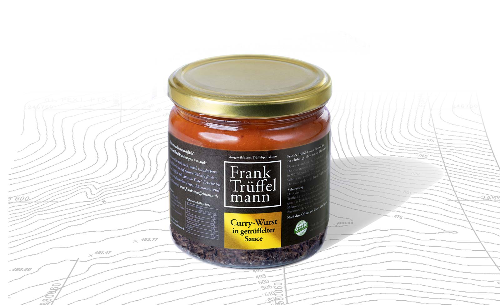 Franks Curry-Wurst in getrüffelter Sauce ist verzehrfertig zubereitet für 2 Personen.