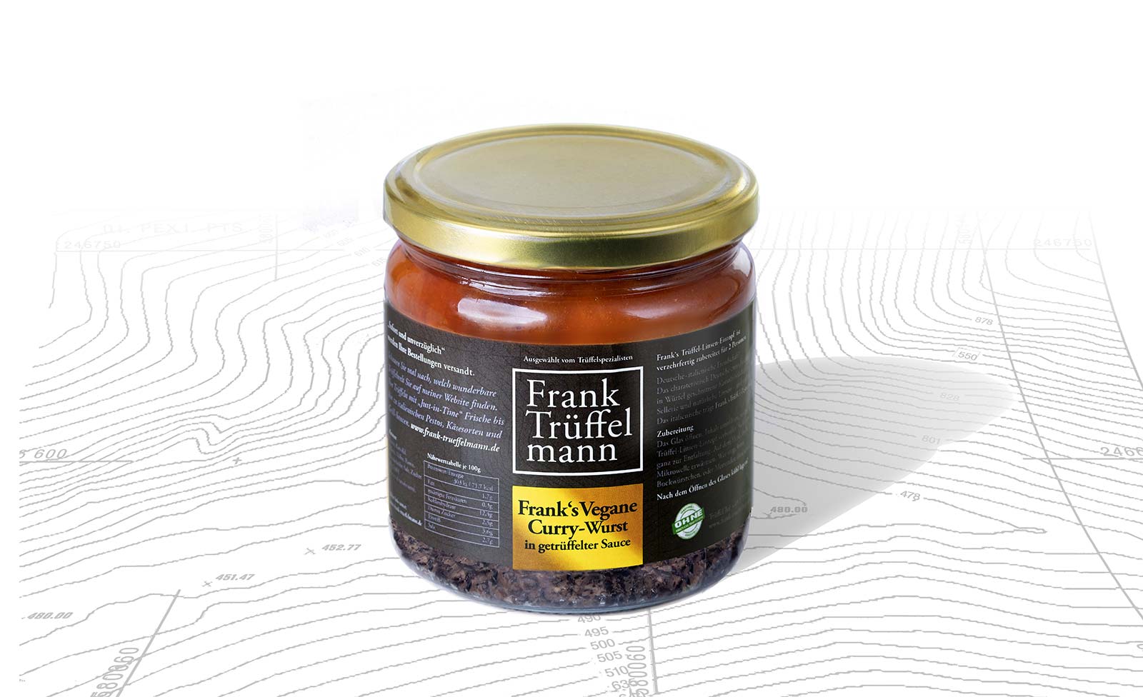 Frank‘s vegane Currywurst in getrüffelter Sauce ist verzehrfertig zubereitet für 2 Personen.